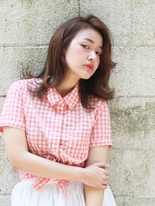 スタイリングは大き目のコテかデジタルパーマでワンカールを*指でクイッと外に向けたら後は軽く揉んでください。